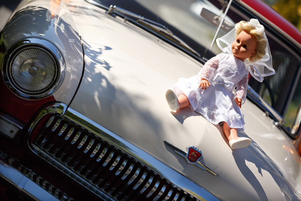 Najważniejszym elementem ceremonii ślubnej była lalka panny młodej umieszczona na zderzaku samochodu ślubnego.