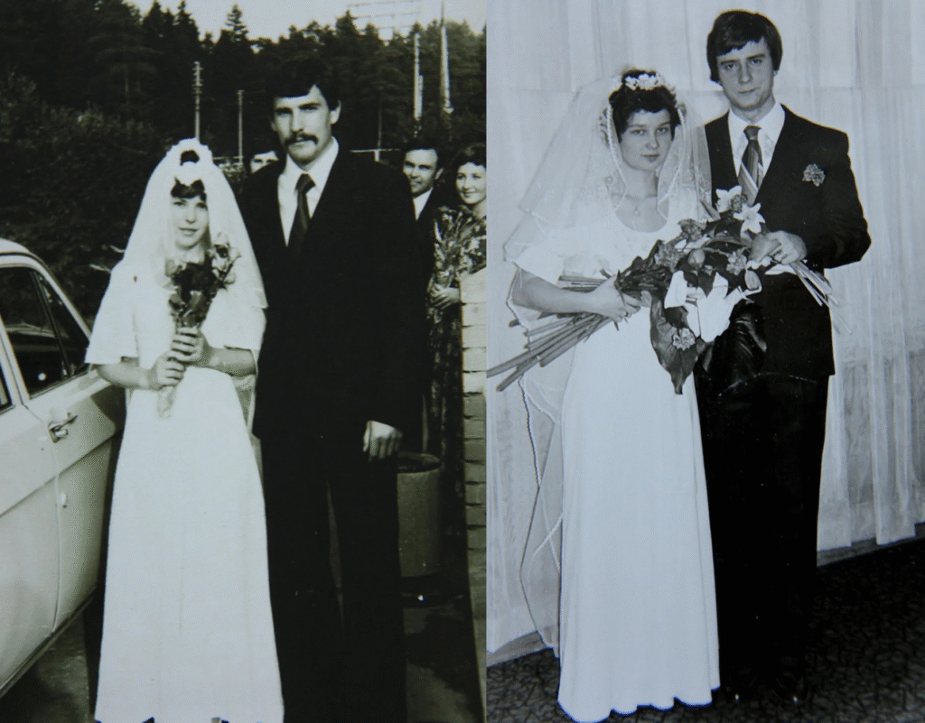 Oto archiwalne zdjęcia z lat 80. Tak wyglądały suknie ślubne w tamtych czasach.