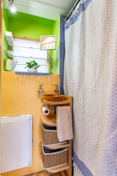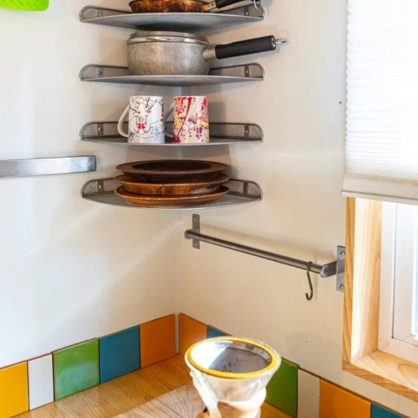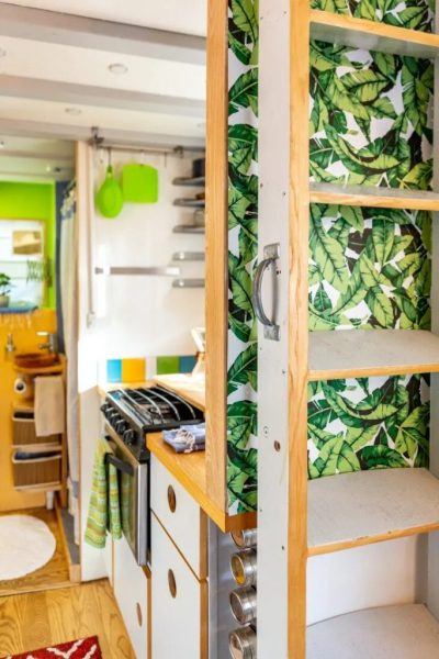 Pani Perra przemyślała, jak ma wyglądać dom i co powinien zawierać. Zaprojektowała nawet meble dopasowane do wymiarów domu, żeby wszystko się zmieściło. I zrobiła to sama. Każda szafka, każda półka jest na swoim miejscu.