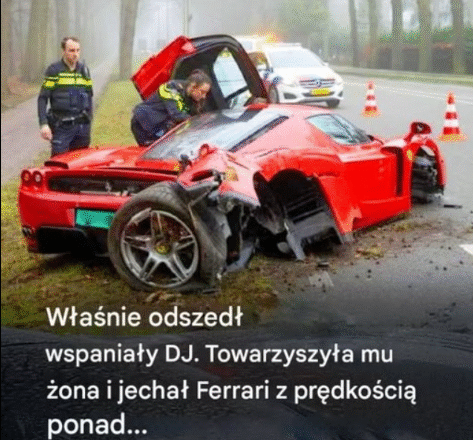 Znany DJ miał wypadek samochodowy w Szwajcarii. Jechał z modelką. Oboje zostali znalezieni spaleni żywcem w samochodzie.