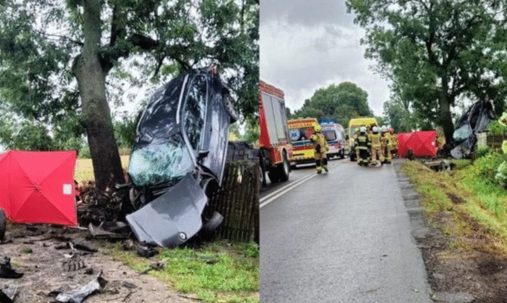 Za kierownicą siedział 44-letni mężczyzna. Niestety, siła uderzenia była tak duża, że kierowca zginął na miejscu. Obok niego podróżowała 37-letnia kobieta i 6-letnie dziecko – oboje zostali ciężko ranni i trafili do szpitala. Na miejscu interweniował śmigłowiec Lotniczego Pogotowia Ratunkowego, a droga przez kilka godzin była całkowicie zablokowana.