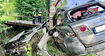 W miejscowości Wara (woj. podkarpackie) doszło do tragicznego wypadku. Samochód osobowy najpierw uderzył w barierę energochłonną, a następnie roztrzaskał się na drzewie.