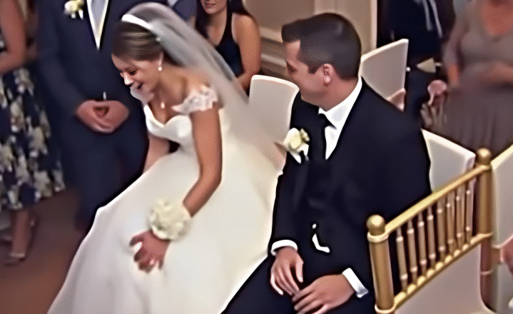 Gdy była zaledwie kilka metrów od swojego przyszłego męża, Camille poczuła, jak coś ociera się o jej nogę. Zaskoczona, zamarła. Muzyka ucichła, a goście pochylili się do przodu, zaintrygowani. Nagle jej sukienka zaczęła się poruszać, najpierw delikatnie, potem coraz wyraźniej. Wśród tłumu rozległ się szmer: „Co się dzieje?”.