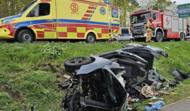 Droga w miejscu zdarzenia została całkowicie zablokowana, a policja zorganizowała objazdy drogami lokalnymi przez Mokre.