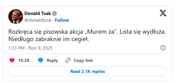 Donald Tusk skomentował te słowa z ironią, wskazując, że „czas bezkarności minął, a prawo wreszcie działa wobec wszystkich tak samo”.