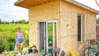 O samotna kobieta urządza się w szopie o wymiarach 3×3 metry i przekształca ją w przytulny, mały dom.